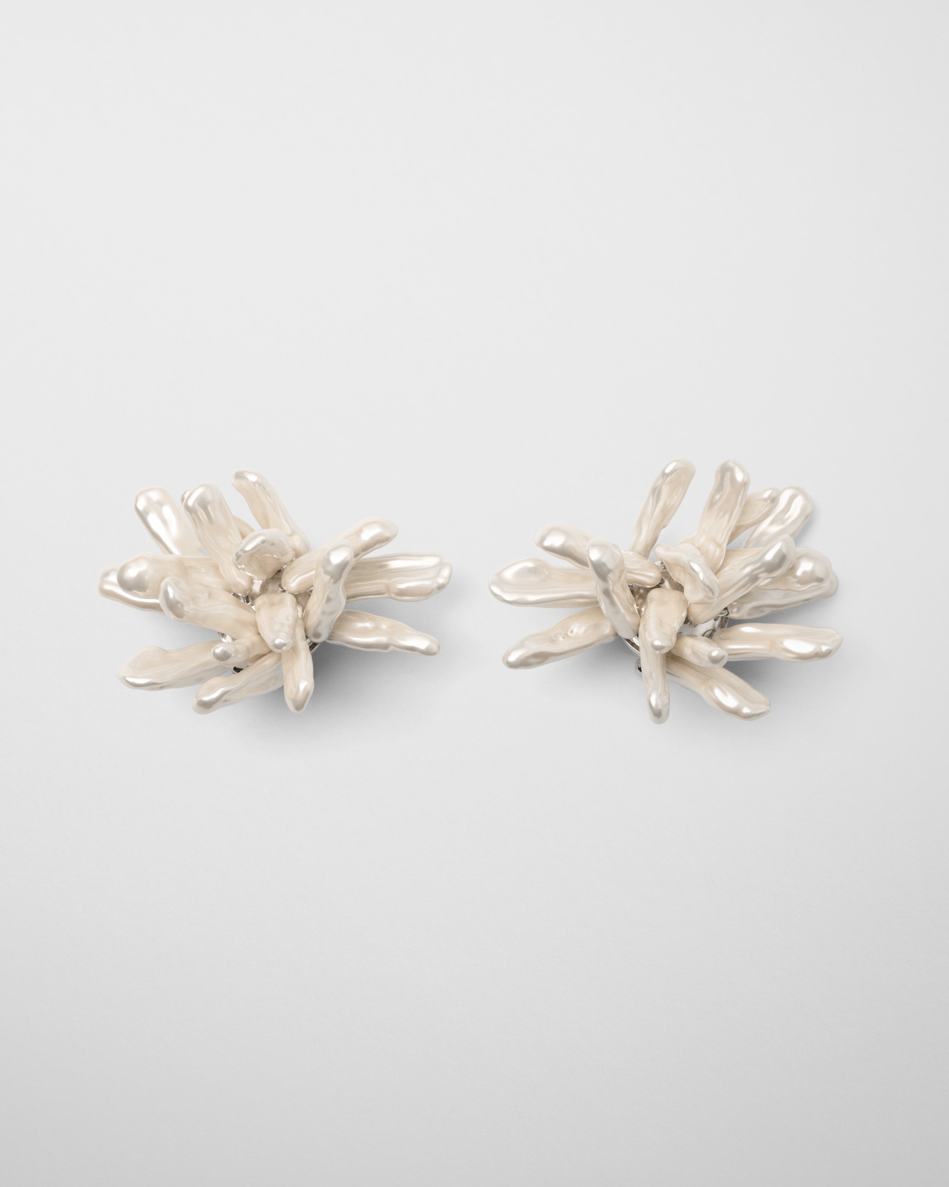 Cluster earrings composed of resin pearls. Irregular pellets have an organic look.