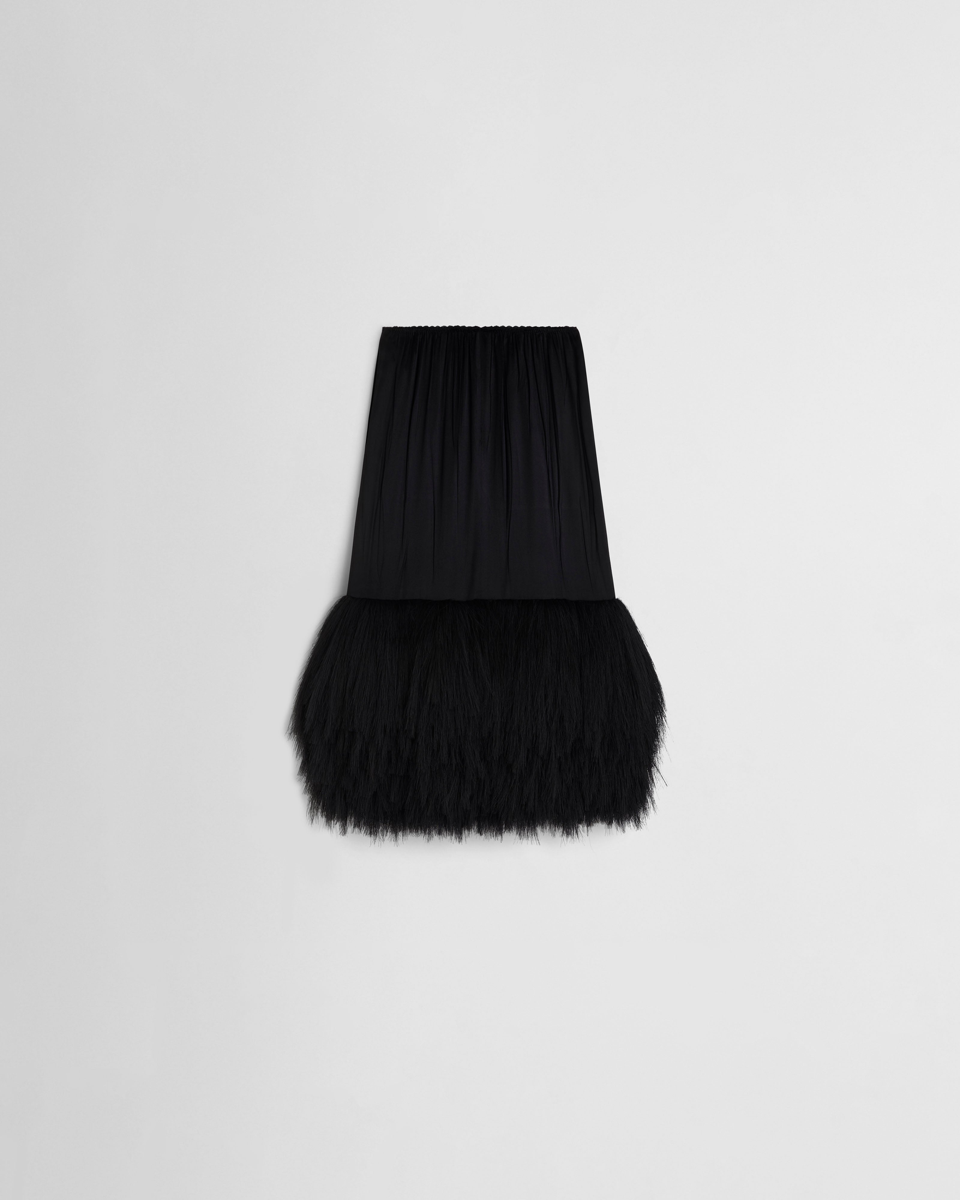 FRINGED SLIP SKIRTin black silk