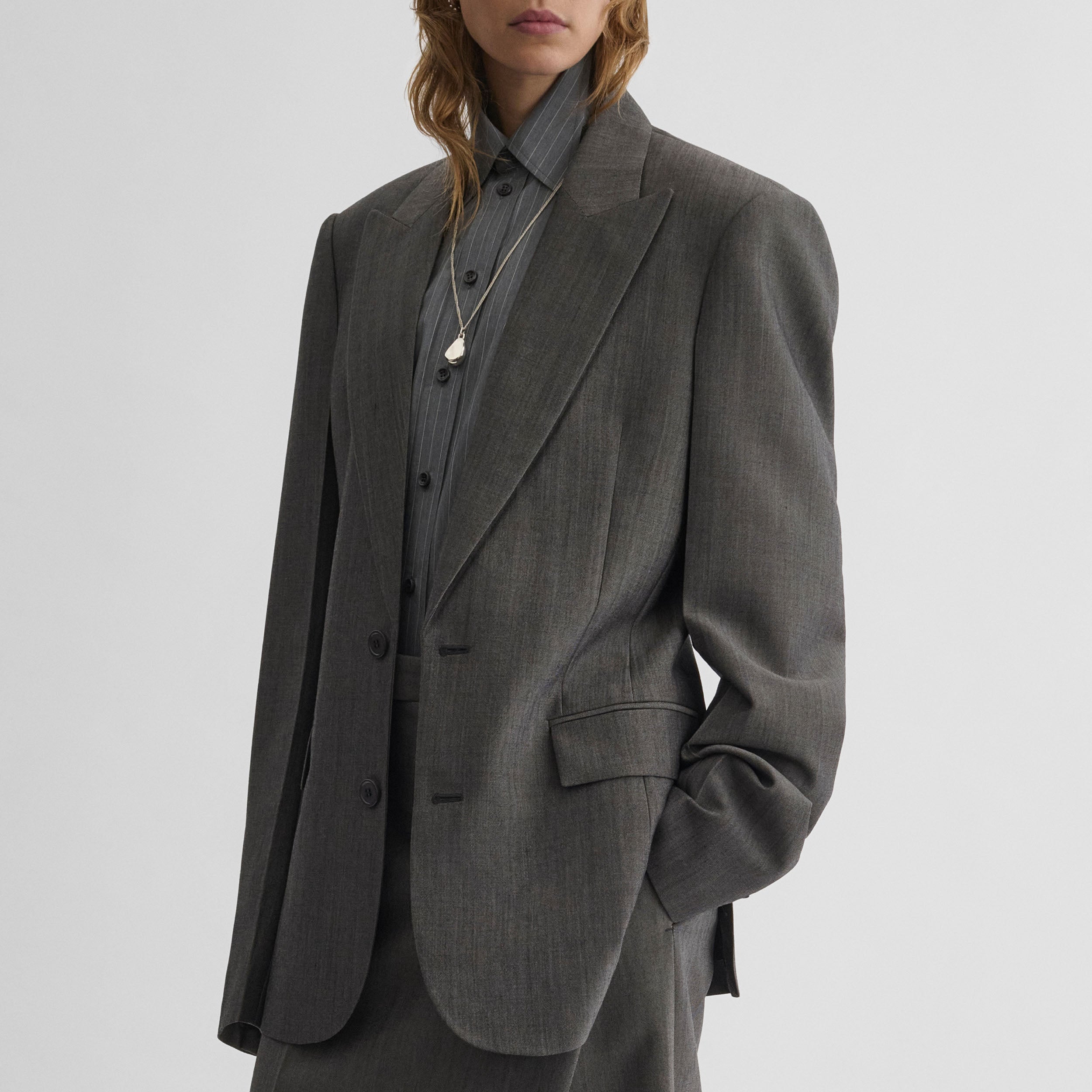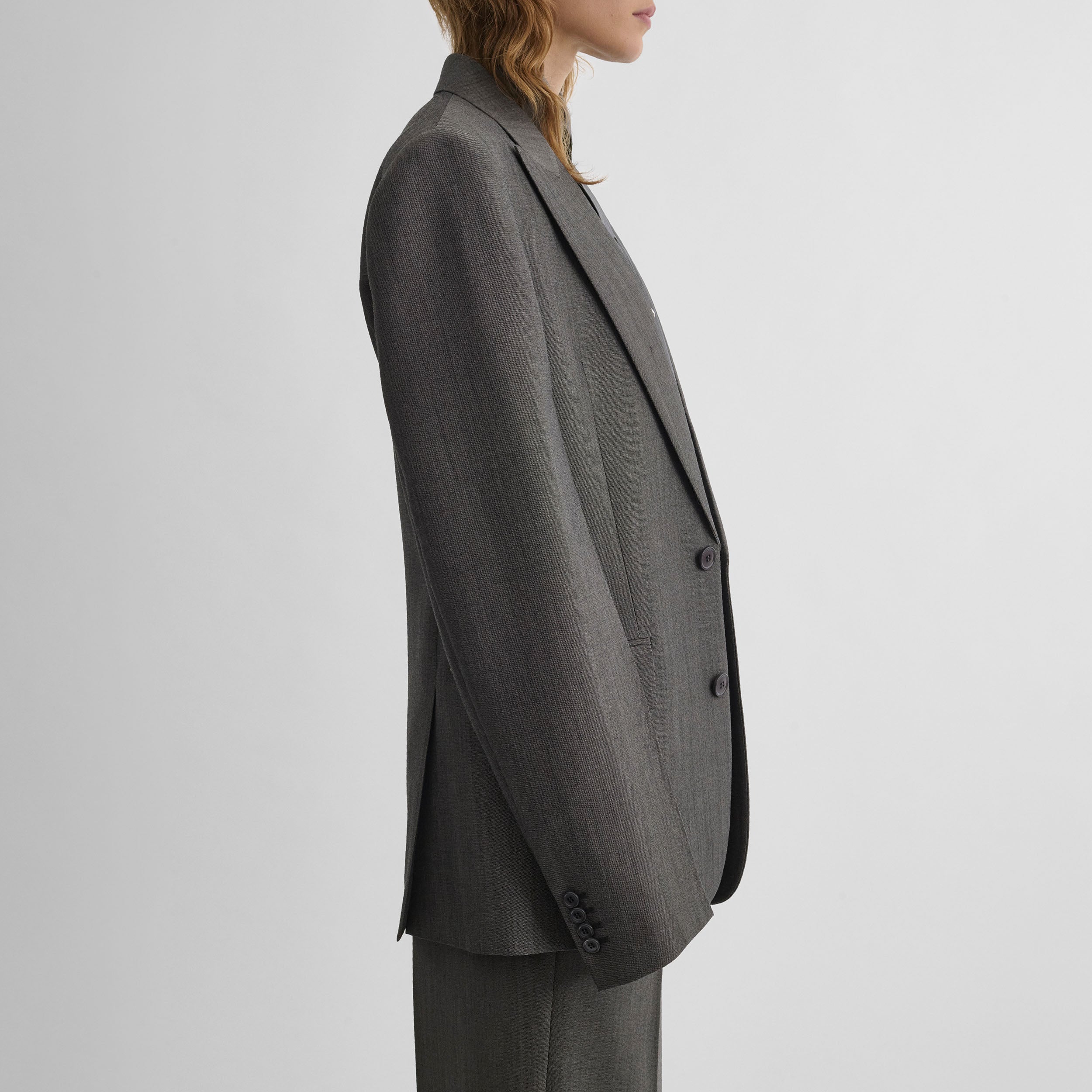 72% responsibly sourced worsted wool, 28% mohair, 100% viscose lining, 100% cotton pocket lining